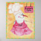 Poster feature an original Acrylic painting of a chef snowman who's wearing a chef's hat and red apron. The sign in the background can be personalised with any text. Inspired by panda cookie chef also by Deborah Miller and found in Visages online gift store.