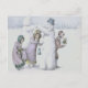 These children know how to enjoy the winter. This vintage Christmas print depicts children playing around snowmen in a snowy field.