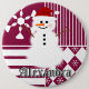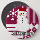 This adorable button is the perfect way to identify stockings on Christmas morning! Personalisation allows you to add someones name, you can then pin this button on a stocking so that it can easily be recognised which stocking belongs to which family member. This design features plum purple background with white snowflakes, stripes and argyle design. There is a white snowman wearing a red Santa Claus hat and he comes complete with a carrot nose and charcoal eyes and mouth. Below this Christmas snowman is text in grey and black front where you can add a name to personalise this button. This Snowman Christmas Stocking Name Tag Button makes a great keepsake to be used every year as a holiday tradition.