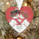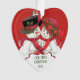 This adorable design features a vintage style, snowman and snow-woman wearing red scarves holiday hats. The text on the bottom reads, "OUR FIRST CHRISTMAS - 20XX". This be personalised. The back of the ornament has an area were you can add your holiday message.