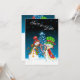 This winter holiday wedding Save the Date announcement features a charming Snowman and Snow-Woman. They are making a heart of candy canes and enjoying an enchanting winter evening lit by a starry Christmas tree in the background.