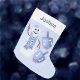 Easy to personalise, this Hanukkah stocking is great for inter-faith families who celebrate both Christmas and Haanukkah. The happy waving Jewish snowman is set on a background of pale pastel blue, along with matching dreidels in soft blues and a touch of purple. A white "cuff" area at the top holds dark blue text in a simple modern font where you can add a child's name but you can also remove the text if you prefer. A Christmas stocking with a Hanukkah theme is a lovely way for blended families to celebrate. Merry Happy Chrismukkah!