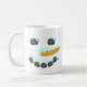 The classic snowman face with carrot nose and coal eyes, crested in snow.