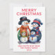 Snowman family party Christmas card in red for a festive Holiday greeting to family and friends.