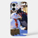 Cute anime phone case featuring a girl building a snowman in a peaceful village square with colourful scarves and soft sunlight. Perfect for festive and playful winter designs.