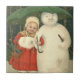 Snowman Girl Umbrella Snowfall Ceramic Tile