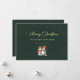 Custom green and gold Merry Christmas card featuring two snowmen against a green background decorated with a snow vignette. A faux gold foil script holiday greeting adds a more festive look to this holiday card. Easily personalise this green holiday card with your family name and text or customise it to create a beautiful business holiday card. The gold foil effect is only simulated in the artwork. More colour options available.