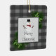 Snowman Grey Buffalo Plaid Ceramic Ornament