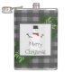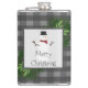 Snowman Grey Buffalo Plaid Flask