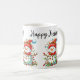 A repeat pattern of a snowman tangled in colourful lights with “Happy Holidays” script written in black lettering makes this mug fun and festive for the holiday season.