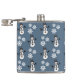 The flask itself is fine. It’s a cheap flask, obviously bought in bulk, however am prepared to overlook that. Given that it is a personalized item, I would have liked to have seen gift boxing instead of the generic packaging. Terrible printing, and/or quality. It’s a cheap, tacky vinyl. It is not cut straight and is also applied in a way that it is overhanging the bottom, causing the glue to catch on items and it will eventually roll and tear, damaging the wrap.