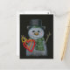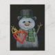Winter Snowman holding Heart Rings Postcard. Fun card for Valentine's Day or just sending greetings from the north in the wintertime.