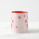 Playful holiday themed mug that makes a perfect Christmas gift or stocking stuffer. Design can be personalised with your child's name and features a snowman hot chocolate design complete with whipped cream, candy canes, peppermint candies and snowflakes in pink and red.