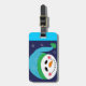 A fun luggage tag featuring a cute snowman in a blue hat, cute expression! Customise as desired.