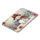 A smiling snowman in a red hat and scarf is surrounded by snow-covered trees and flowers on this cute and charming magnet. Perfect little stocking stuffer!