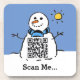 Cartoon illustration of a snowman on a sunny day, with your own QR Code.