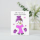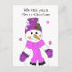 A cute design featuring a snowman in purple hat, mittens and scarf. Says we wish you a merry Christmas...