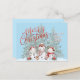 Send a postcard with a winter wonderland of Christmas cheer! This holiday postcard features 3 festively dressed snowmen with evergreen trees and snowy in the background. There is a family name template on the front for you to customize. The back of the postcard features a blue background with a message template to send a wish with your cards.
