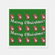 Your personalised napkin design features a tiled photograph of a red and green stocking with an adorable snowman dressed with a seasonal plaid scarf and hat set over a red background. You can remove one or both of the black outlined white Merry Christmas text lines then click Customise to add text in a font style, colour and size you prefer.Click Customise it! to select a background colour other than green under Edit and Background.