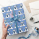 Snowman wrapping paper. Snowman illustration in a sunny, snowy setting. Winter sunshine and fun snowman cartoon.