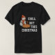 This Christmas T-shirt serves up holiday cheer with a side of cheesy goodness, featuring a laid-back snowman tossing pepperoni onto a fresh pizza.