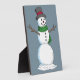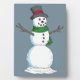 A cheery-but-chilly looking snowman wears a red-ribboned top hat and green scarf in this wintry illustration by Richard H. Fay.