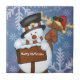 Customisable Merry Christmas sign with a snowman in a top hat and an adorable reindeer in a Santa hat, against a blue snowflake background
