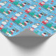 Snowman Santa Kids Personalised Blue Christmas Wrapping Paper