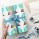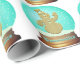 This snow globe is done in turquoise, gold and bronze and holds a gold metallic look snowman whom is waving and smilng. It is ready for you to personalise if you wish.