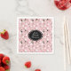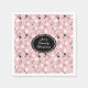 Adorable snow people with snowflakes, holly, and candy canes on pink make a great fun winter holiday Christmas personalised party dinner napkin, with a sweet retro feel and the words (Your family name) Family Christmas, or any message of your choice.