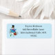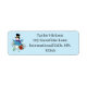 A charming snowman, warmly dressed in a bright blue coat and light blue mittens, arms open wide as if inviting you to share in the joy of the season. Topping off the look is a classic black top hat. Beside the snowman, two large snowflakes and a vibrant red poinsettia that brings a festive pop of colour. All set against a soft light blue backdrop