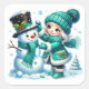 Christmas sticker is shown with a cute festive holiday snowman print.