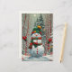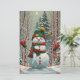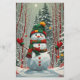 Snowman in the forest, in red and green tones, perfect for the end-of-year holidays