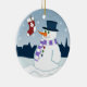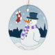 Snowman illustration in a Christmas scene with his own personal stocking pegged and hanging from a washing line.