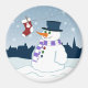 Snowman illustration in a Christmas scene with his own personal stocking pegged and hanging from a washing line.