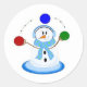 Snowman Tossing Balls Classic Round Sticker