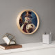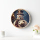 Snowman:Wall Clock, 10" Round Natural Wood Frame Clock