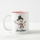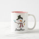 Snowman with blue bird customisable Christmas Two-Tone Coffee Mug