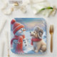 Snowman With Puppy Paper Plate