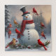 Snowman with Red Cardinals Snowy Jigsaw Puzzle