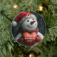 Adorable snowman holding heart ornament personalised with name and Christmas year.