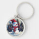 This image of a snowman wearing a red and scarf standing in front of trees, shows festive atmosphere making it perfect on Keychain during festive periods. It can also be used as a gift.
