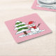 Snowman with Snowy Pine Tree Square Paper Coaster