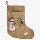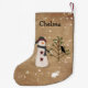 This Snowman With Tree Christmas Stocking would fit nicely with a primitive or country holiday decor. Customise it with your own name or text.