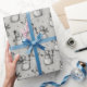 Christmas wrappers in pencil drawn style snowman design pattern.