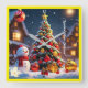 A festive Christmas scene featuring a snowman, a beautifully lit Xmas tree, and sparkling snowflakes, all illuminated with a golden glow, capturing the warmth and magic of the season. "Original Image was generated by Meta AI. AI generated artwork. Licensed under CC BY-SA 4.0.