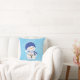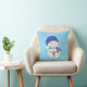 On one side of the pillow, a snowman is savouring a cup of hot cocoa, surrounded by whimsical winter delights. The other side of the pillow features a heartwarming snowman juggling snowballs, one entangled in glowing lights, another standing cutely snuggled in warm winter gear, and two snowmen snuggled together reading a story.