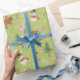 Snowmen, candy canes, gingerbread men, and Christmas trees on a green background.