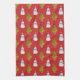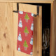 Cute kitchen towels with watercolor snowmen and Christmas trees pattern on festive red background