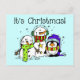 Snowmen and Penguins It's Christmas Holiday Postcard